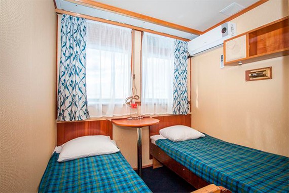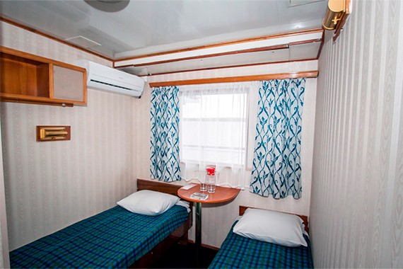 Двухместная двухъярусная каюта с частичными удобствами, расположенная на главной палубе. Душ и туалет на палубе. В каюте: двухъярусная кровать, полка с плечиками для одежды, раковина с холодной и горячей водой, стол и стул, радио, розетка, обзорное окно.