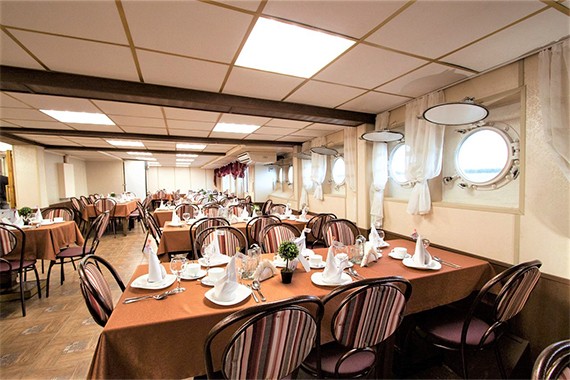В ресторанах организовано трехразовое питание в одну смену по заказной системе. В баре путешественников ждут легкие закуски и снеки, алкогольные и безалкогольные напитки.