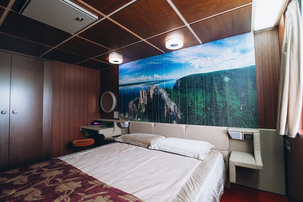 Для комфортного проживания туристов, на теплоходе представлены каюты разных категорий. От одноместных и четырехместных стандартных кают, до кают класса полулюкс и люкс. Все каюты расположены на главной и шлюпочной палубах. Каждая каюта имеет окно, оборудована санблоком (туалет, душ, раковина) и общесудовой системой кондиционирования. В каютах категории люкс и полулюкс есть двуспальная кровать, телевизор, холодильник, индивидуальный кондиционер.